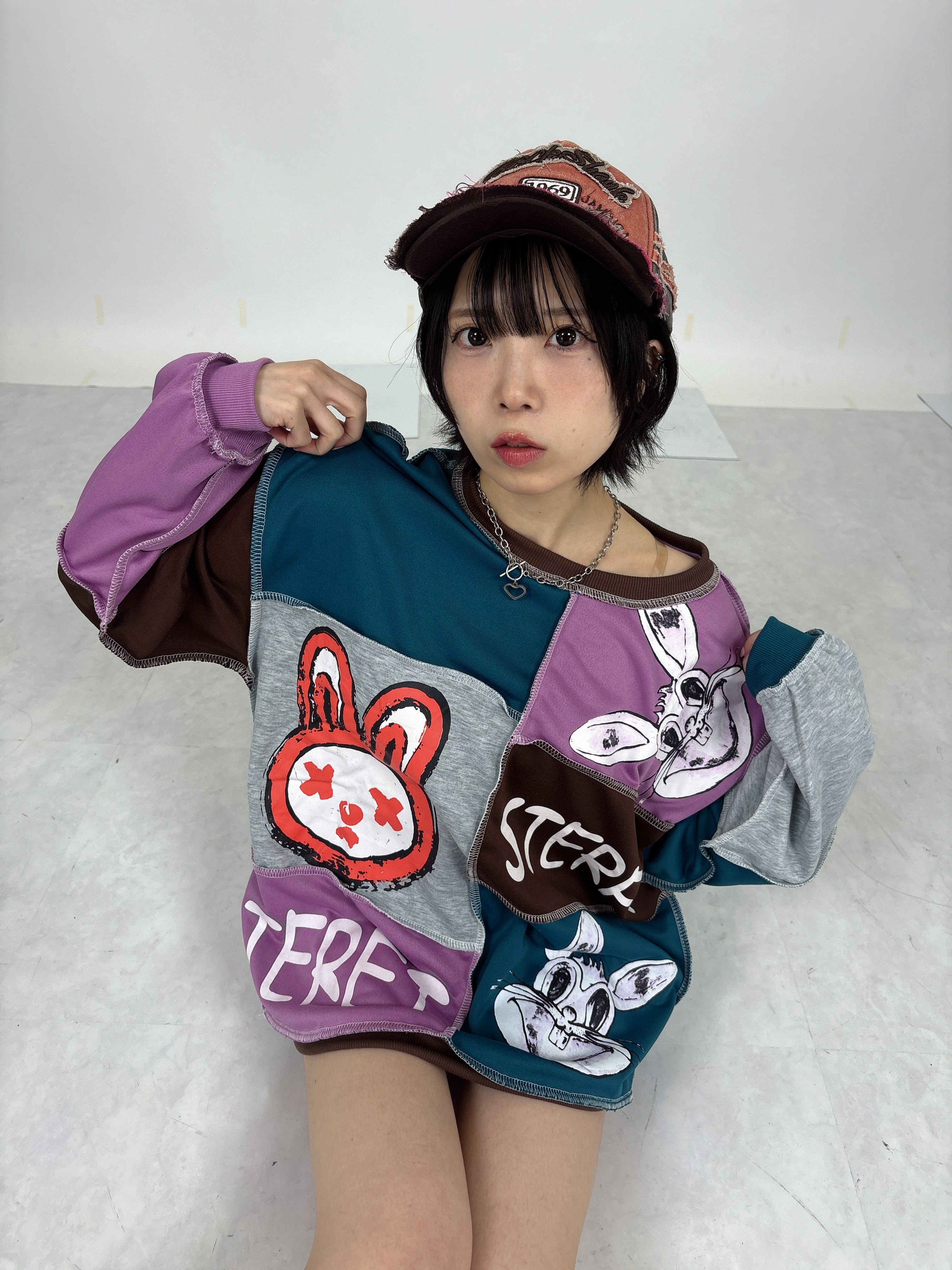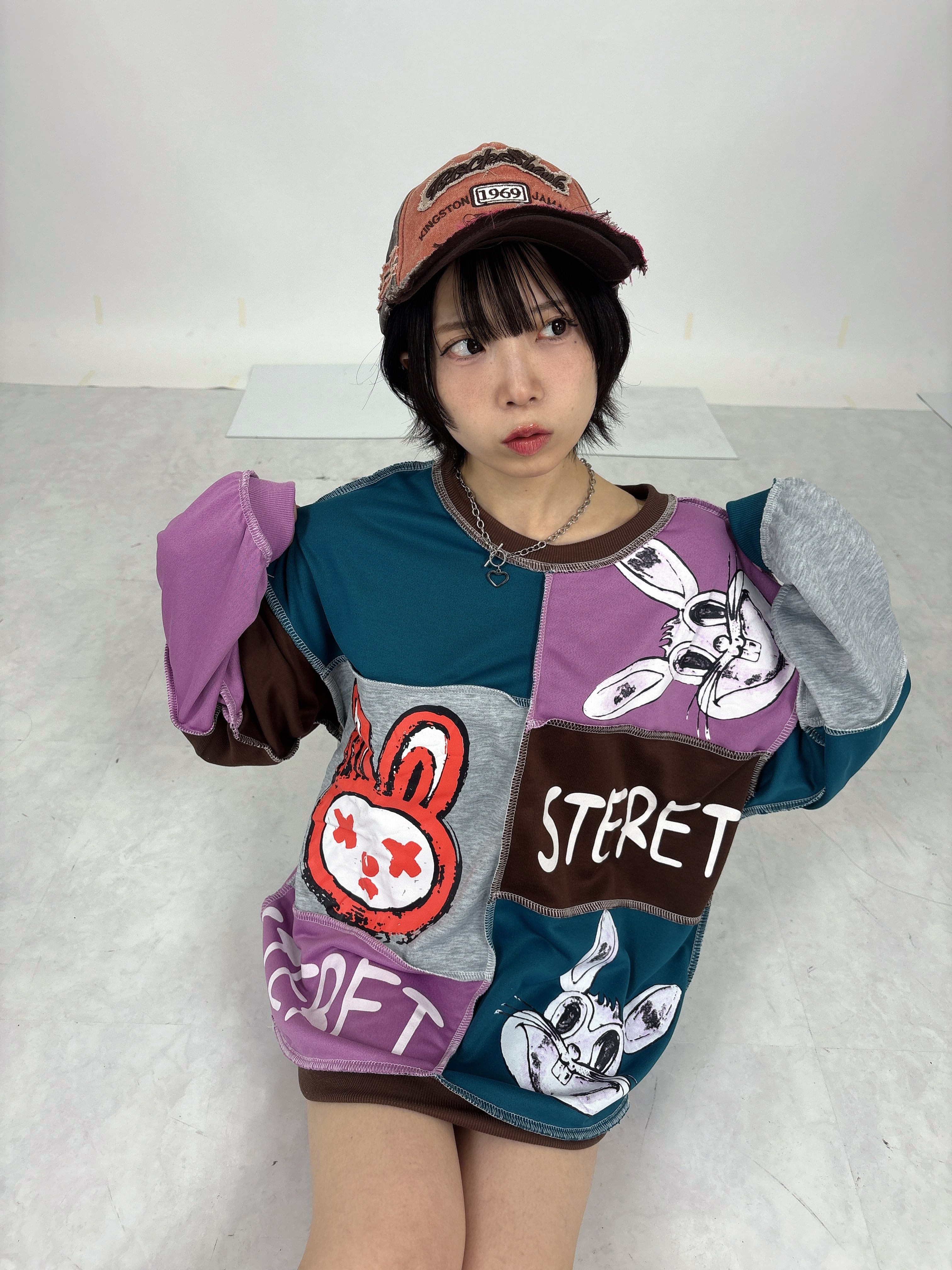 パッチワークプルオーバー(うさぎ)は、愛らしい兎柄が特徴的なアイテムです。異素材のパッチワークデザインが個性的で、カジュアルなコーディネートにぴったり。ゆったりとしたシルエットは、日常使いはもちろん、リラックスした時間にも最適です。女の子らしさを引き立てる可愛らしいデザインで、お友達とのお出かけや、カフェでのひとときにも大活躍します。